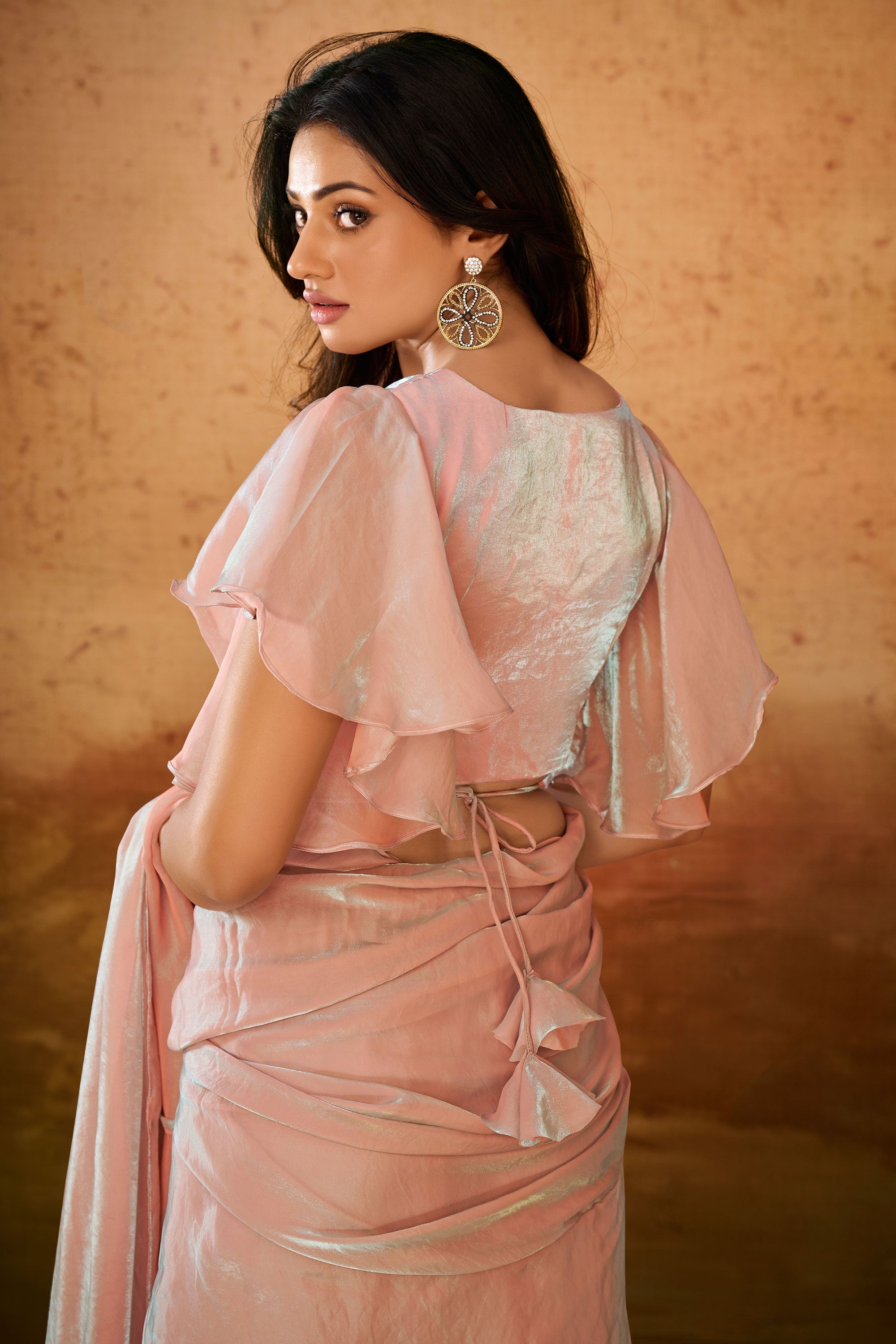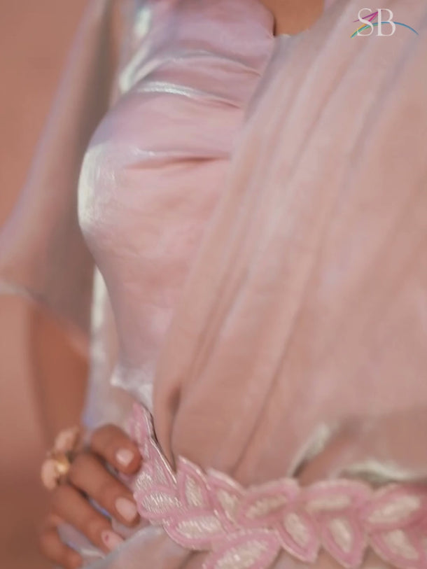 Blazing Peach Color Hand Work Function Wear Organza Saree