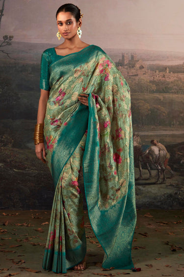 Showcase elegance with our latest collection, Weaving Work Soothing Banarasi Saree. It's an ensemble that is rich in history, resonating the soulful artistry of Indian craftsmen. This banarasi saree embodies a calming shade, creating a beautiful harmony between tradition and sophistication. A fine addition to your wardrobe that exudes an ethereal charm on any occasion. Experience the grandeur of Indian culture with our offering.