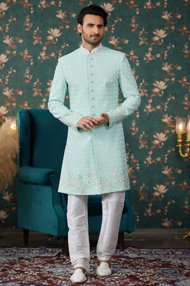 Blissful Sea Green Color Art Silk Fabric Wedding Wear Sherwani For Men