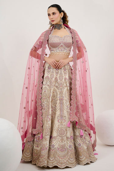 Blossom Beige Silk Embroidered Readymade Lehenga Choli
