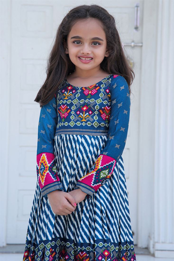 Blue Function Wear Pashmina Silk Patola Foil Printed Kid S Gown