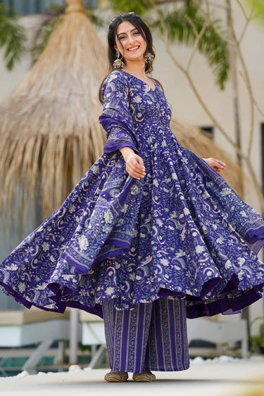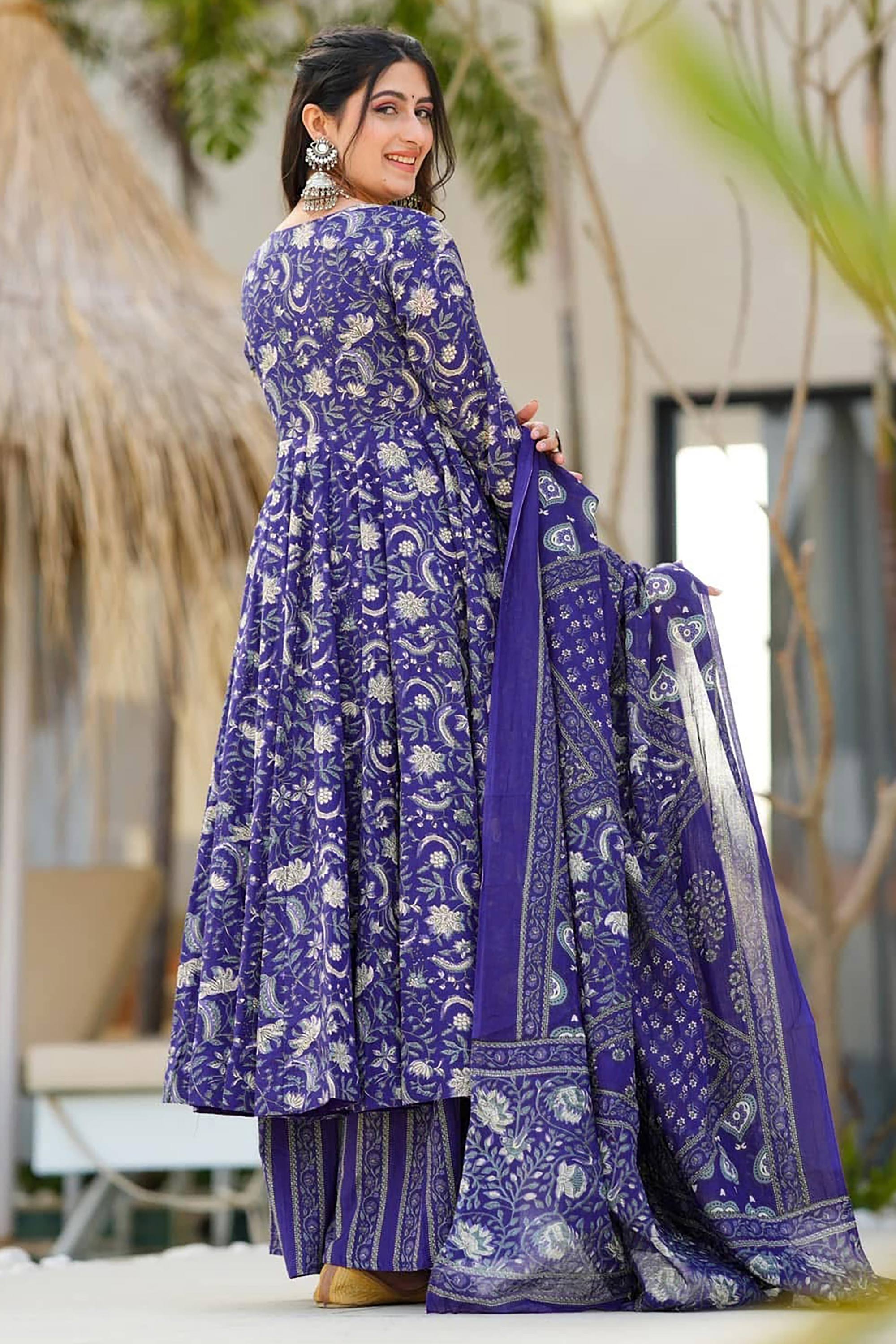 Blue Muslin Festive Wear Designer Readymade Palazzo Dress