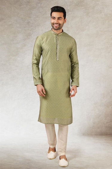 Brilliant Ethnic Look Art Silk Kurta Pyjama In Olive Color