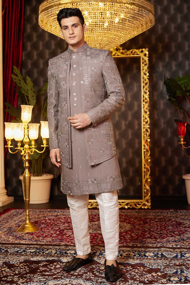 Crafted from luxurious Art Silk, this 3-piece Indo-Western features intricate computer embroidery thread work, perfect for weddings. The premium fabric and refined details ensure you look regal on your special day. Note: Slight color variations may occur due to digital photography.