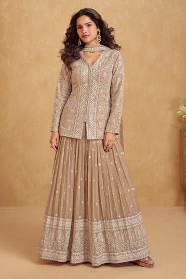 Brown Embroidered Georgette 3 Piece Salwar Suit