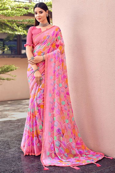 Casual Printed Beatific Chiffon Saree In Pink Color