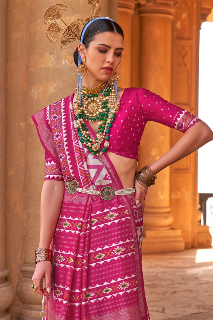 Casual Wear Art Silk Fabric Rani Color Majestic Saree