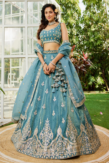 Champagne Green Pure Organza Heavy Embroidered Bridal Lehenga Choli