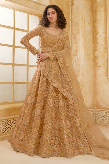 Make a lasting impression with our designer lehenga choli from our bridal collection. Crafted from luxurious net and silk fabrics, this outfit is a blend of comfort and elegance. The heavy embroidery on the lehenga and blouse elevates the design, while the net dupatta provides the final graceful touch. Available in a semi-stitched size, this ensemble allows for easy tailoring to your measurements. Be the highlight of your special day with this breathtaking wedding attire.
