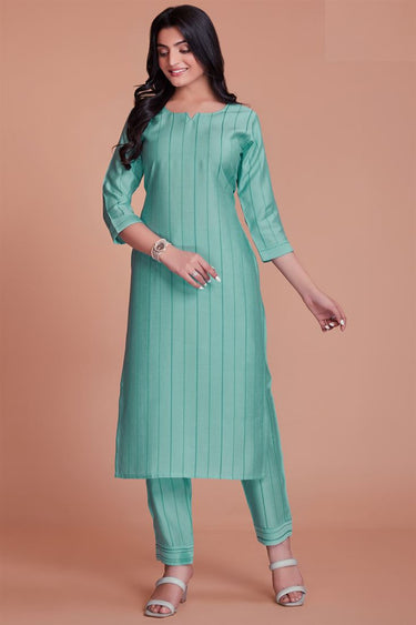 Charming Sea Green Color Viscose Fabric Kurti With Pant
