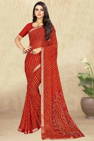 Chiffon Fabric Red Color Printed Casual Wear Engrossing Saree