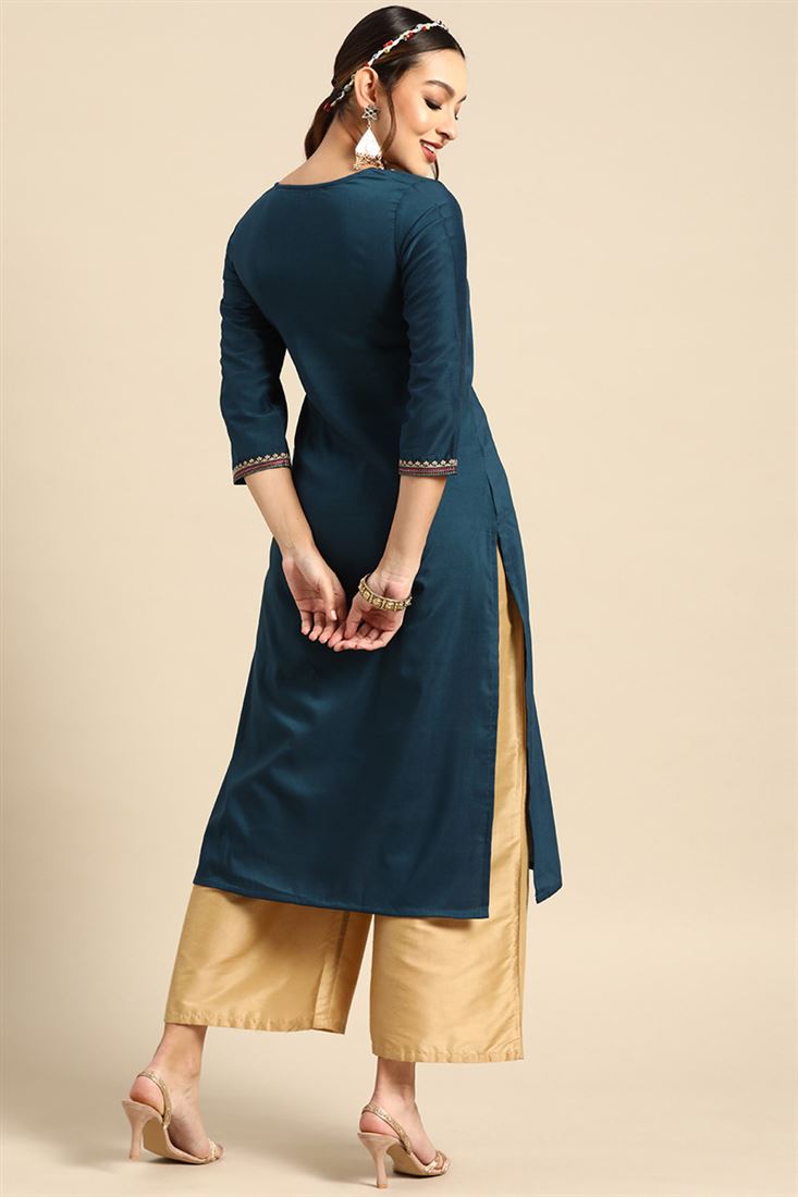 Chinon Fabric Blue Color Festival Wear Intriguing Kurti