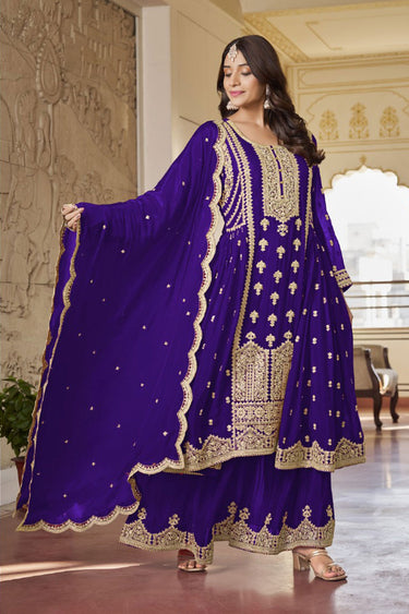 Chinon Fabric Embroidered Readymade Palazzo Salwar Suit
