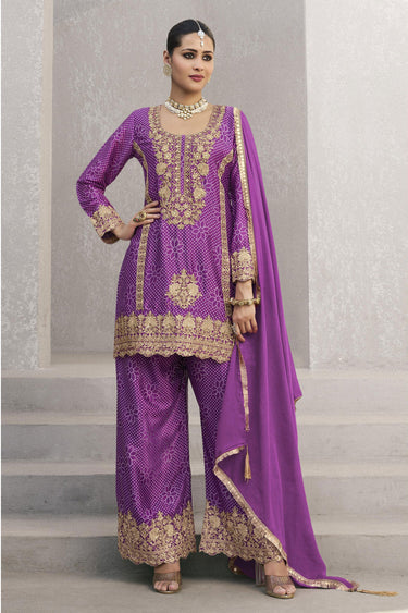 Chinon Silk Embroidered Purple Designer Readymade Pakistani Style Salwar Kameez