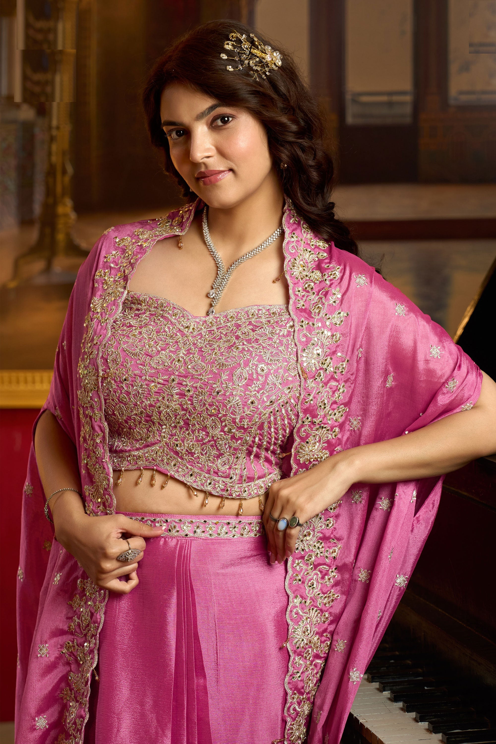Chinon Silk Pink Indo Western Readymade Palazzo With Short Top
