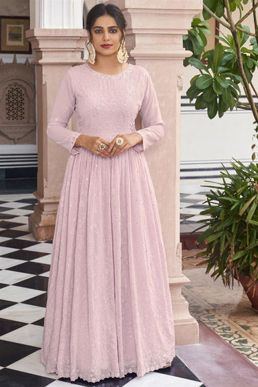 Classic Pink Color Embroidered Georgette Readymade Anarkali Suit