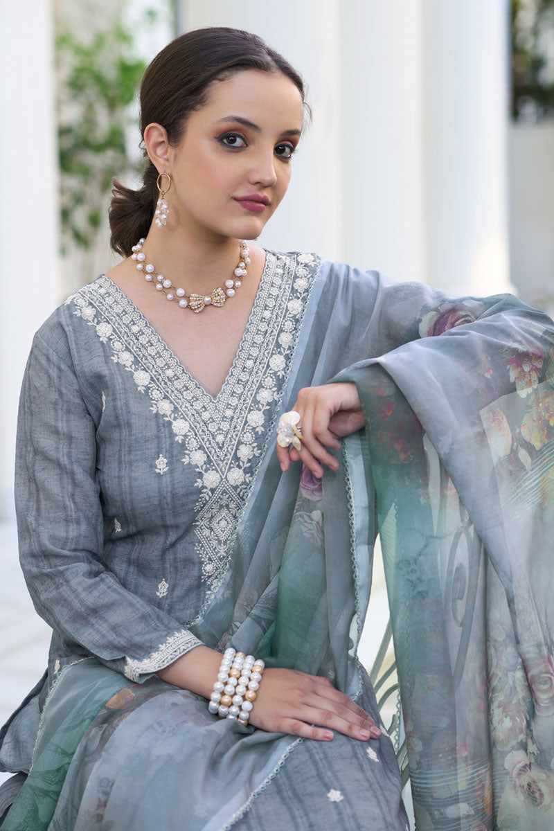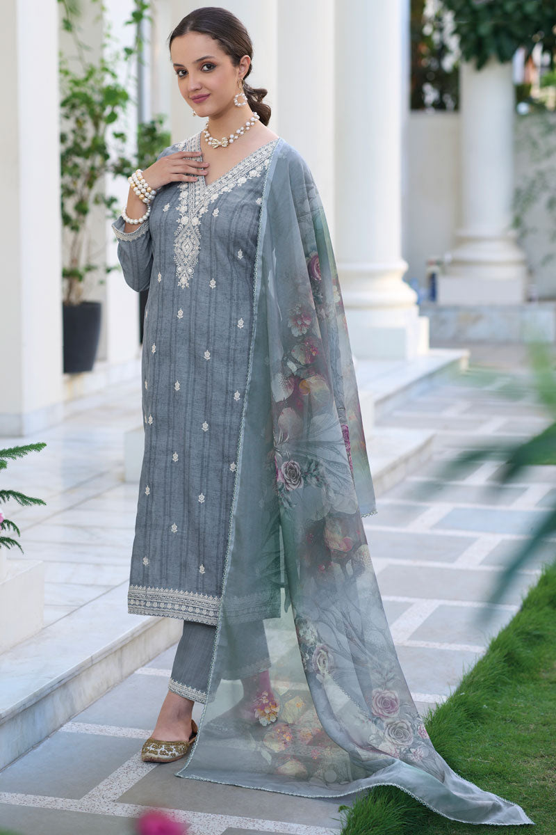 Contemporary Grey Color Cotton Readymade Salwar Suit