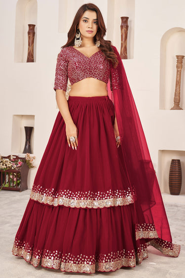 Contemporary Red Color Georgette Lehenga Choli For Sangeet Function