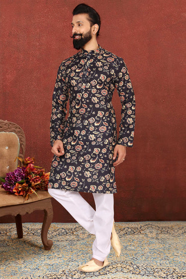 Cotton Fabric Black Color Trendy Readymade Men Kurta Pyjama