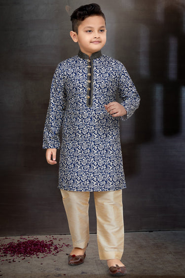 Cotton Fabric Blue Color Function Wear Boys Stylish Readymade Kurta Pyjama