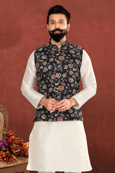 Cotton Fabric Designer Wedding Wear Readymade Jacket For Men In Black Color