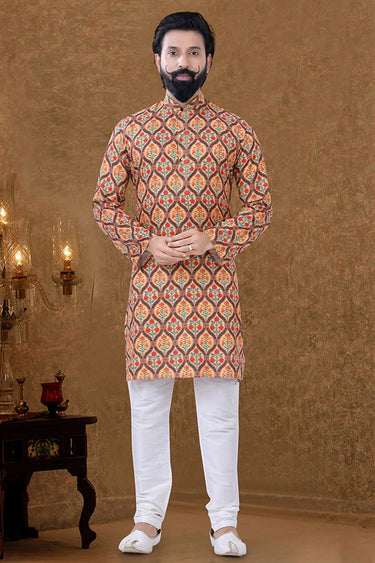 Cotton Fabric Ethnic Wear Wondrous Kurta Pyjama In Orange Color