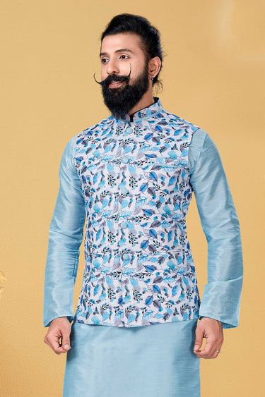 Cotton Fabric Festive Wear Readymade Lovely Sky Blue Color Jacket For Men