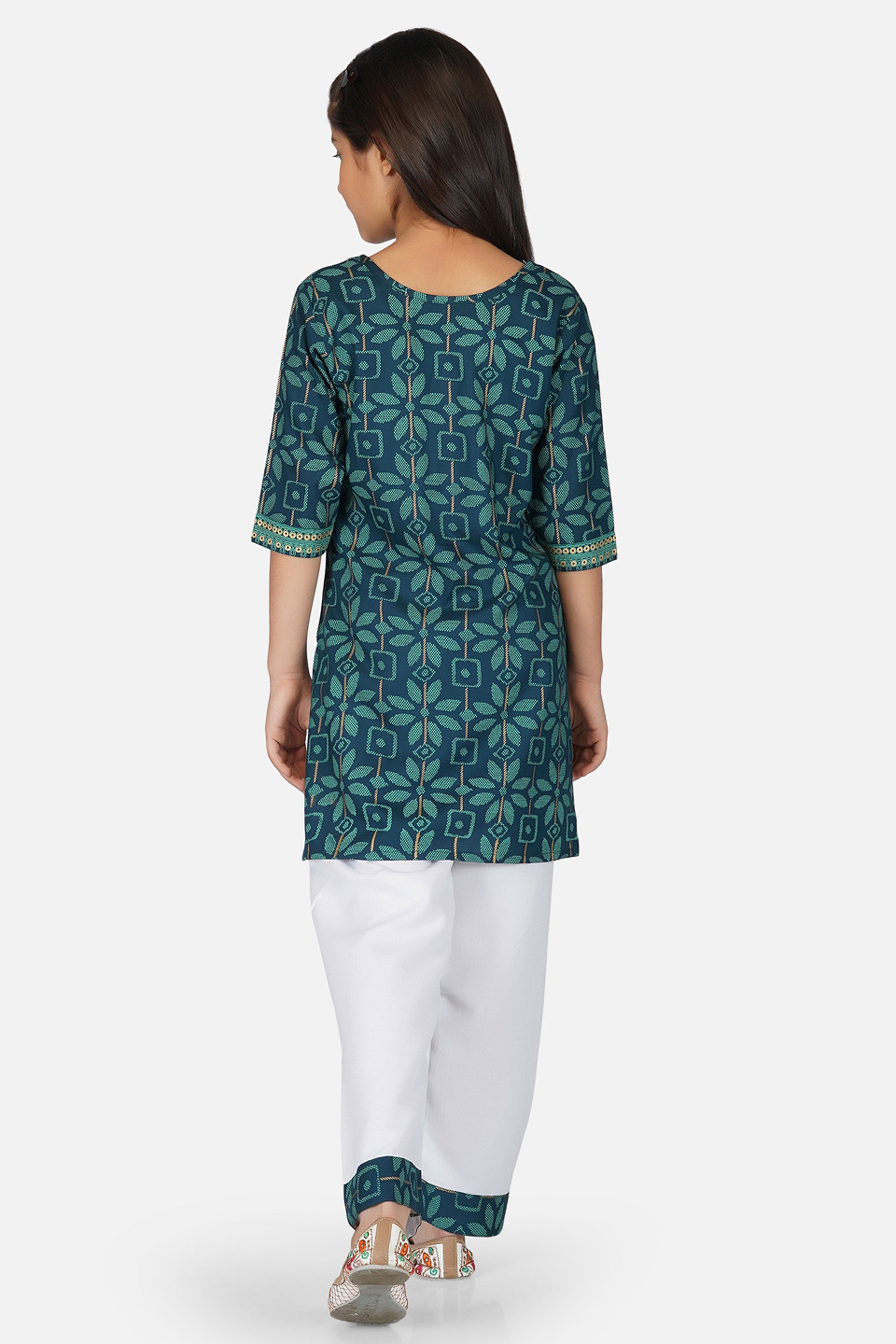 Cotton Fabric Printed Teal Color Readymade Kids Salwar Suit