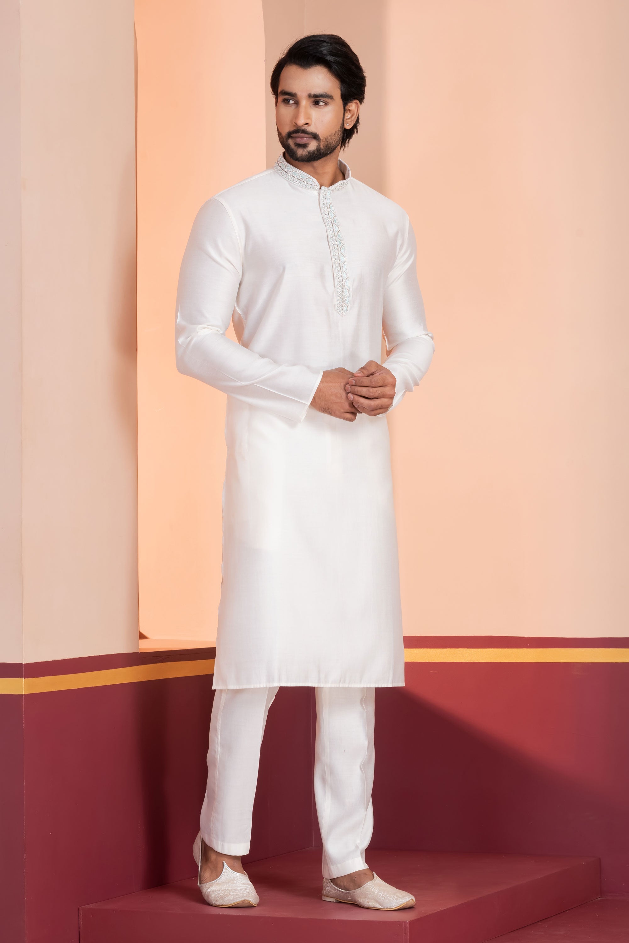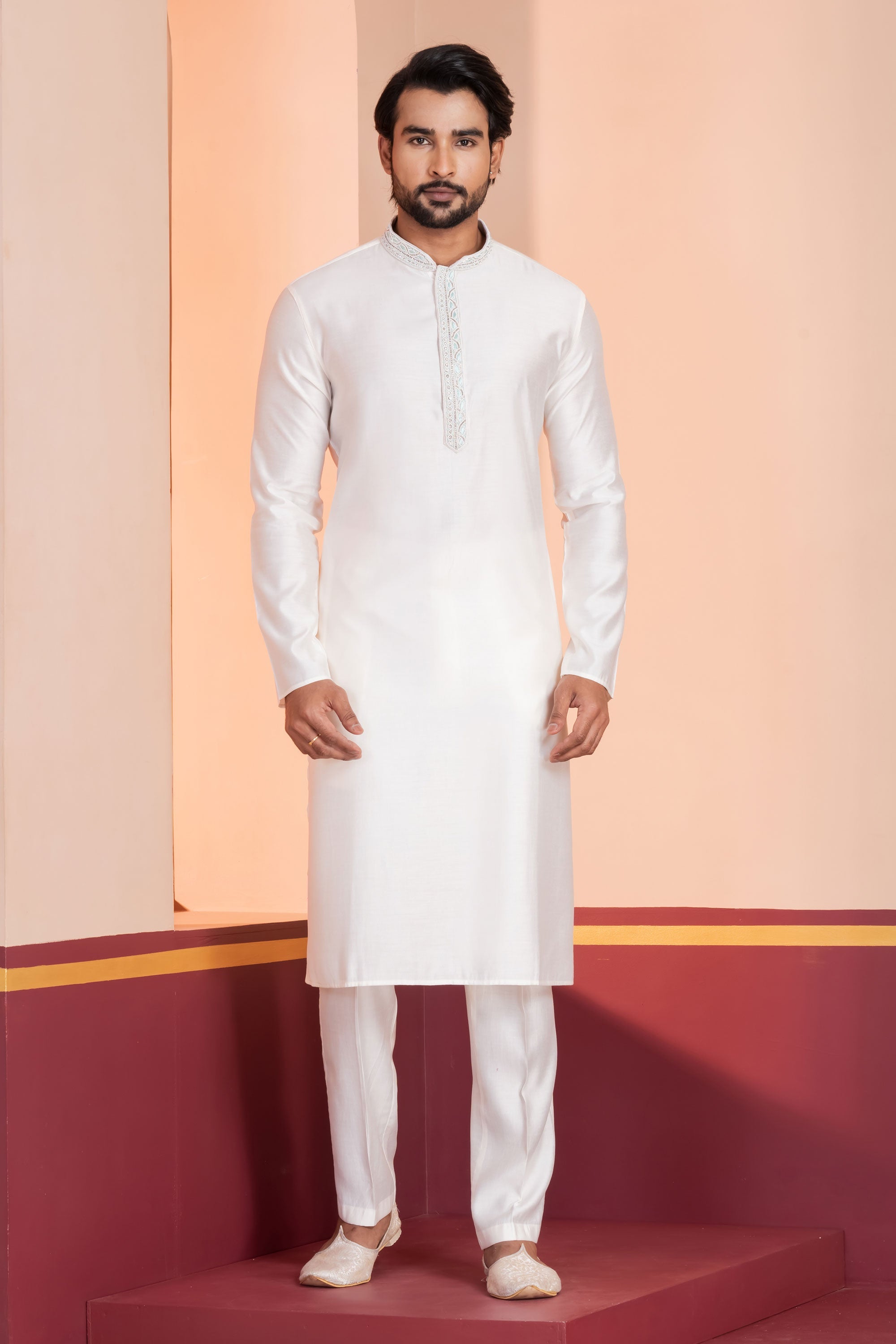 Cotton White Sangeet Wear Readymade Men Stylish Kurta Pyjama