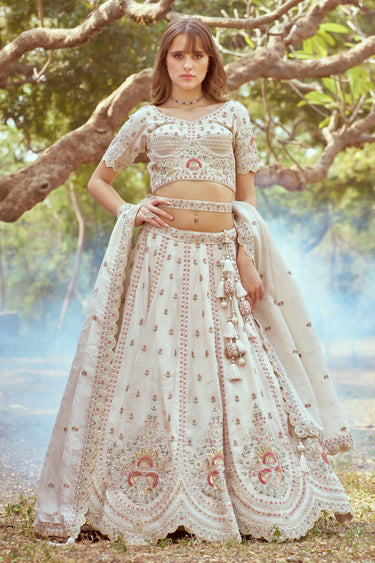This stunning lehenga choli from our Designer Bridal Collection is crafted with rich embroidery to add a luxurious touch to your special day. The set includes a semi-stitched lehenga, unstitched choli, and an exquisite dupatta. Customizable to fit waists up to 38 inches and busts up to 38 inches, this lehenga features a 3.5-meter flair and a 27-inch belt for perfect comfort. The dupatta measures 2.5 meters in length and 1 meter in width. Make your wedding day even more special with this elegant bridal ensemble.