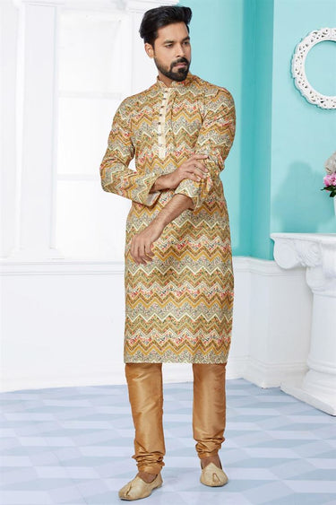 Cream Color Engaging Fancy Fabric Festive Wear Printed Readymade Kurta Pyjama For Men