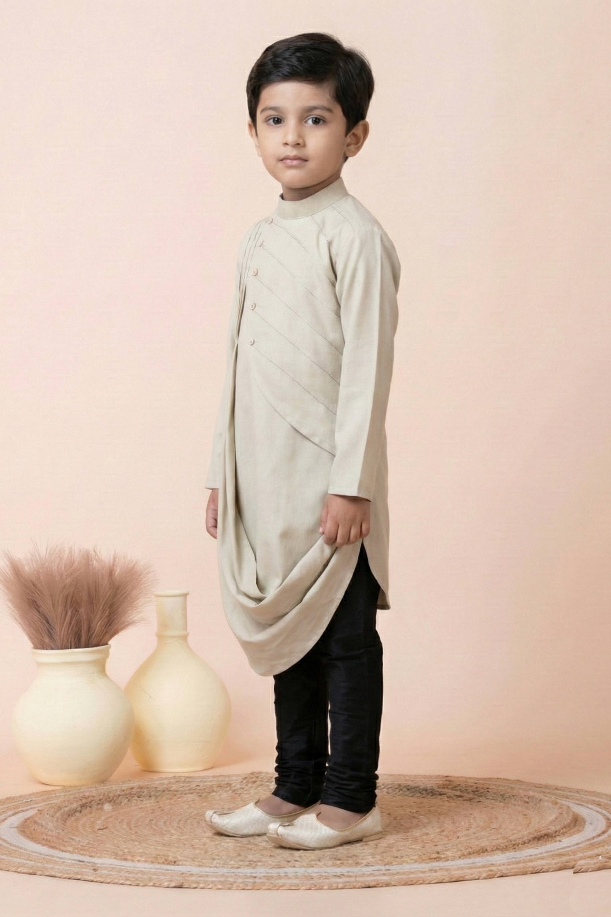 Cream Festive Wear Cotton Fabric Readymade Kurta Pyjama For Boys