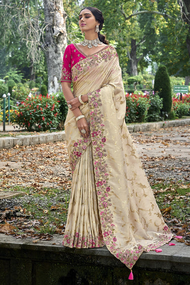 Creative Beige Color Silk Saree With Heavy Embroidered Blouse