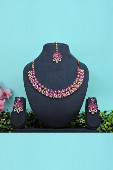 Creative Necklace Set Earrings And Mang Tikka For Women In Purple Color Alloy Material
