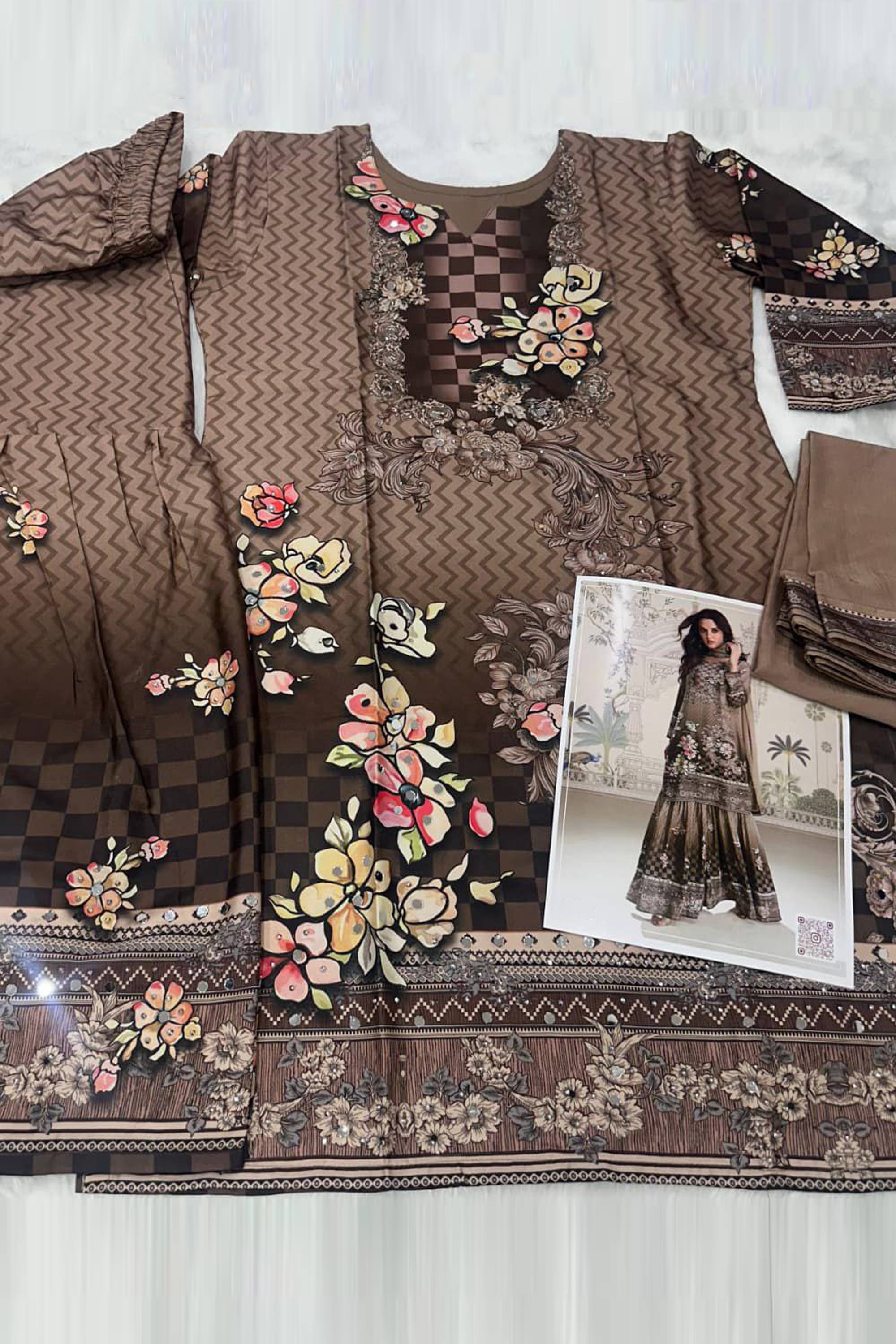 Add charm to your ethnic collection with this Premium Crepe Fabric Digital Printed Palazzo Salwar Suit. This ready-to-wear ensemble is crafted from soft crepe fabric for a luxurious yet breathable feel. The eye-catching digital print makes it suitable for weddings, festivals, and family gatherings. The relaxed fit of the palazzos offers ease of movement without compromising on style. Its elegant design works for both day and evening occasions, keeping you looking radiant. An ideal combination of tradition and modern fashion, this salwar suit is a wardrobe must-have for women who value comfort and timeless style.