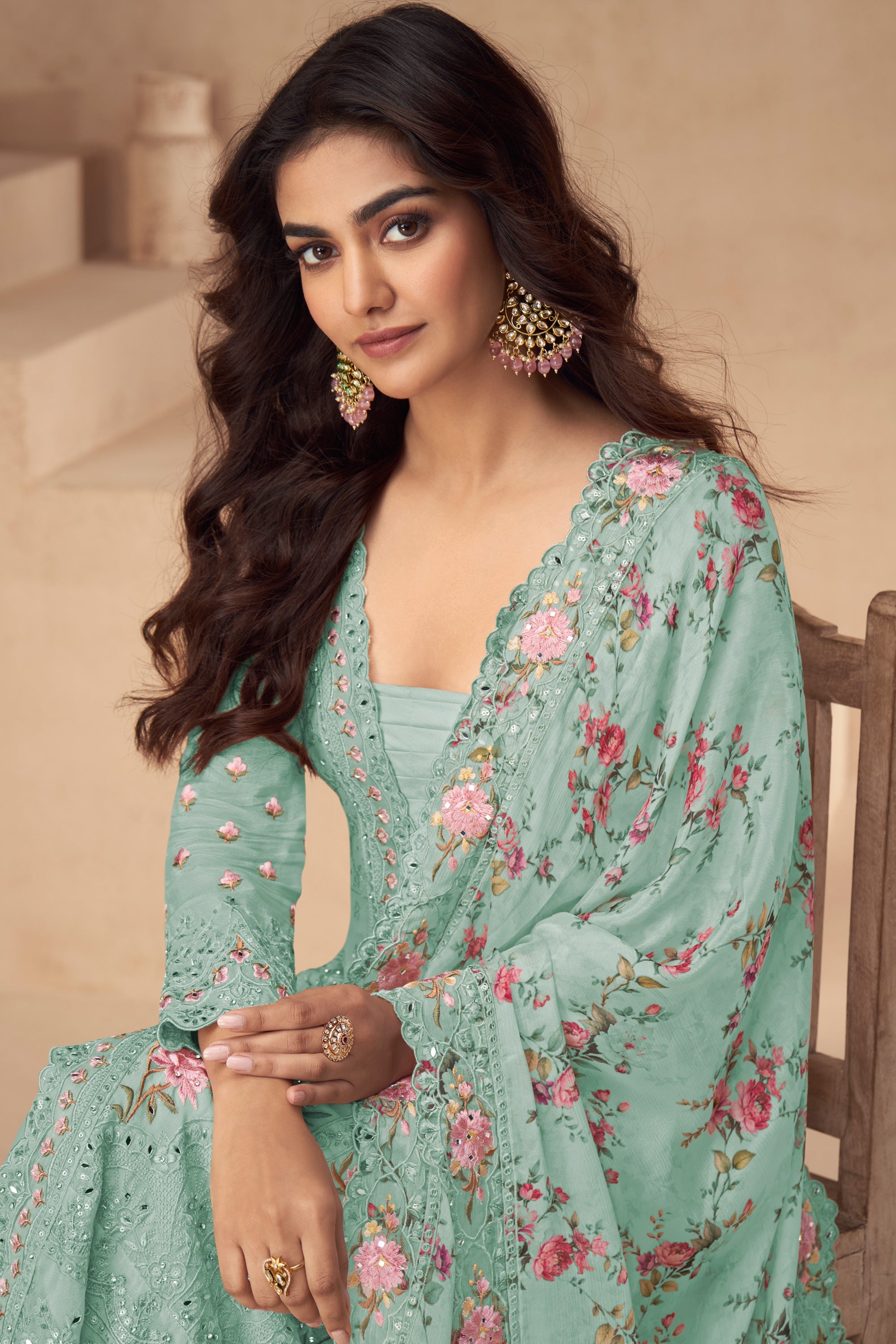 Elevate your festive wardrobe with this stunning Chinon Silk Fabric Designer Palazzo Suit. Crafted for elegance and comfort, the luxurious silk fabric provides a rich texture that flows gracefully. The designer touch brings a unique charm, making it perfect for special occasions and celebrations. Pair it with your favorite accessories to complete the look and leave a lasting impression at any event. Available in a variety of colors to suit your personal style.