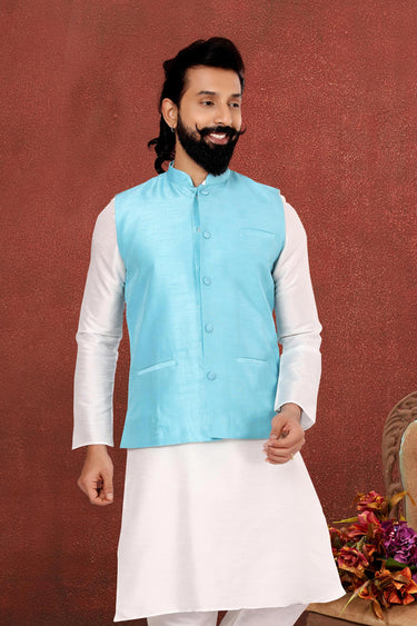 Cyan Dhupion Silk Fabric Wedding Wear Trendy Readymade Jacket For Men