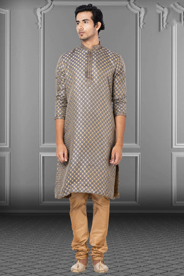 Dark Beige Jacquard Fabric Sangeet Wear Fancy Readymade Kurta Pyjama For Men