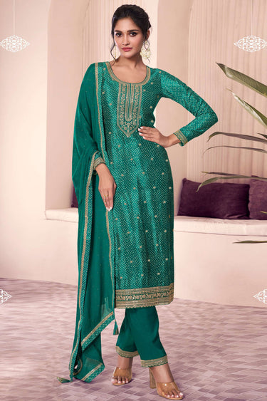 Dark Green Color Chinon Fabric Festive Wear Salwar Suit
