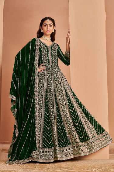 Dark Green Color Embroidered Anarkali Dress In Georgette Fabric