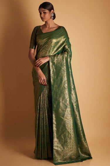 Dark Green Color Reception Wear Two Tone Kanjivaram Silk Fabric Saree