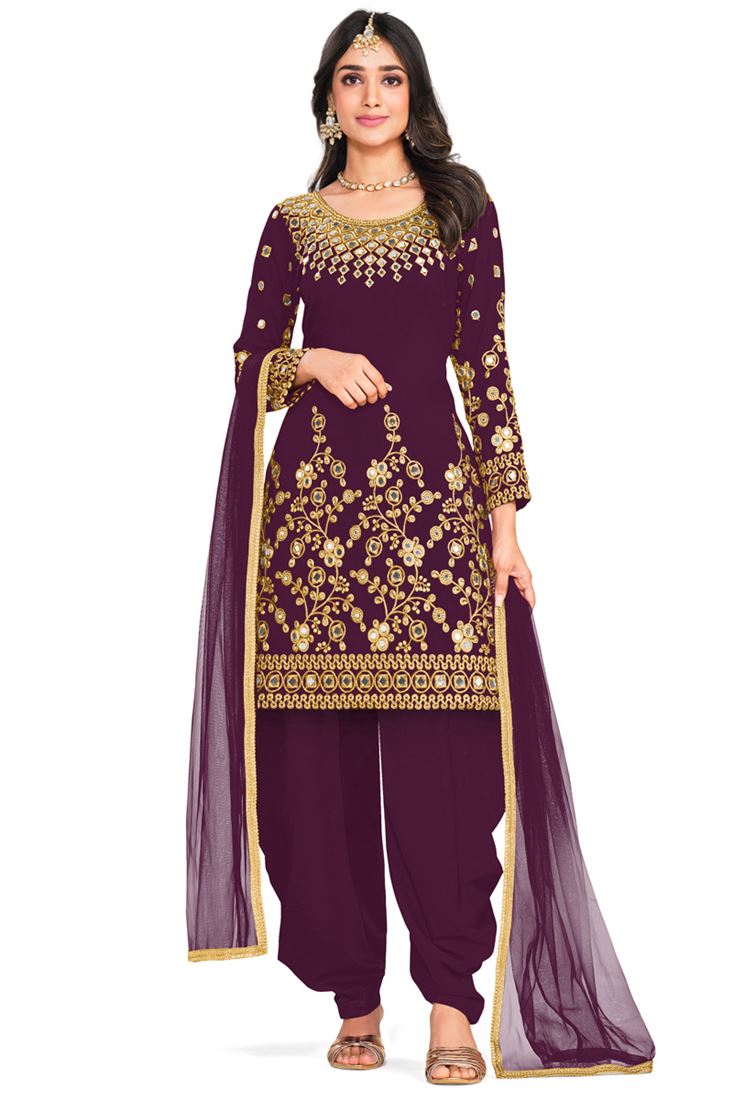 Dazzling Art Silk Fabric Purple Color Patiala Suit