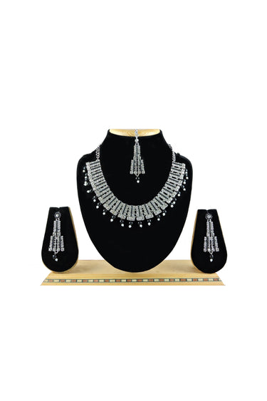Dazzling Black Color Necklace Set Earrings And Mang Tikka For Women In Alloy Material