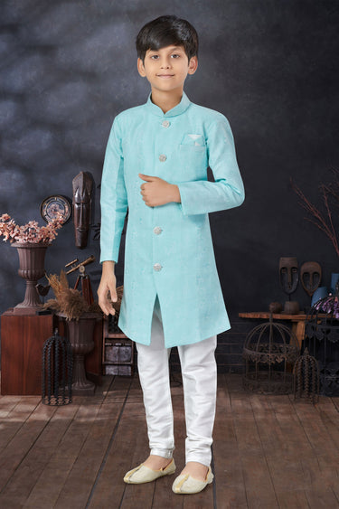 Reach Color Traditional Wear Readymade Indo Western For Boys - Perfect for any traditional or cultural event, this Indo Western attire blends vibrant colors with contemporary styling. Made for young boys, it offers an effortless way to look stylish without compromising on comfort. This ready-to-wear outfit features a combination of rich fabrics and intricate patterns, making it a standout piece. Suitable for festivals, weddings, and family gatherings. Available in multiple sizes to ensure the best fit for your child.