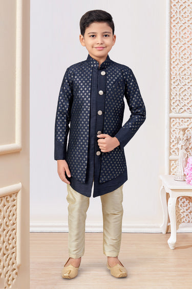 Designer Readymade Indo Western For Boys In Navy Blue Color