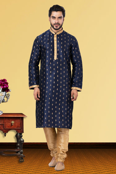 Dhupion Attractive Function Wear Readymade Men Kurta Pyjama In Navy Blue Color