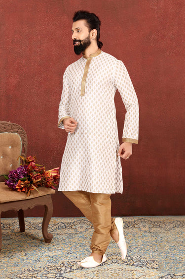 Dhupion Silk Fabric Readymade Off White Color Kurta Pyjama For Men