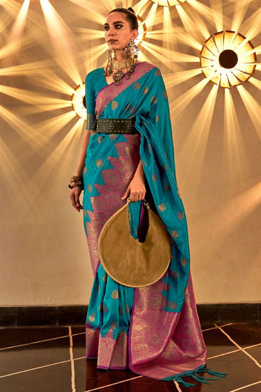 Crafted with utmost care and attention to detail, this Cyan Color Silk Saree is the epitome of luxury and sophistication. The soft and lustrous silk fabric drapes beautifully, enhancing your natural beauty with every step you take.