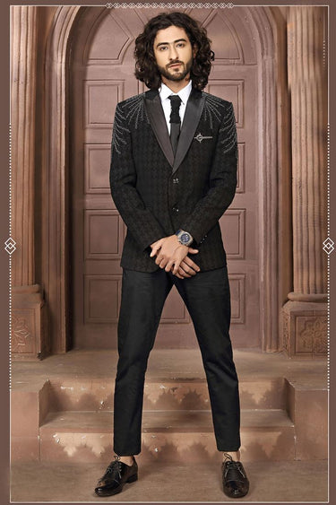 Elegant Wedding Wear Art Silk Fabric Black Color Jodhpuri Suit