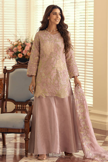 Embroidered Art Silk Readymade Palazzo Dress In Pink Color
